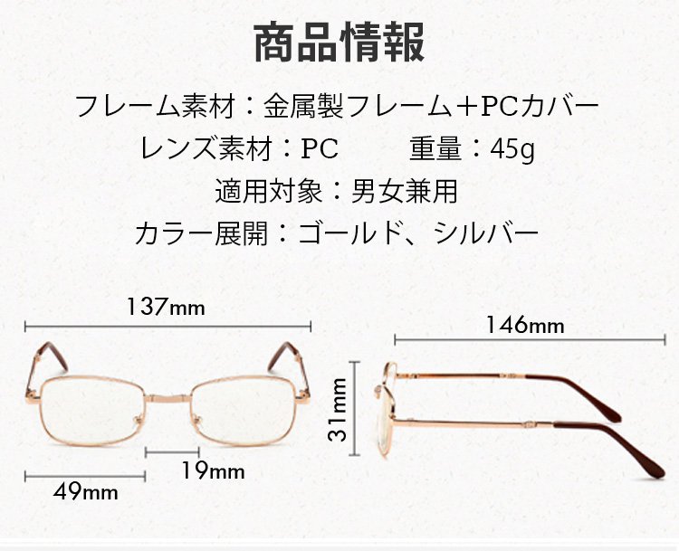 【折り畳み可能の老眼鏡】ブルーライトカット、紫外線カット、クリアな視野、軽量